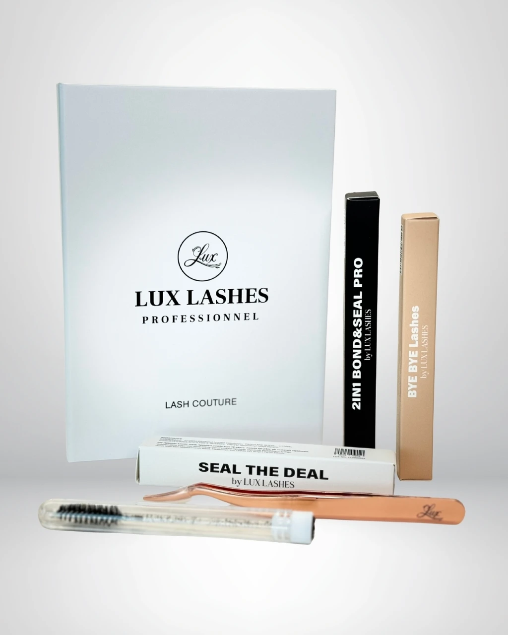 Starter Kit 2.0 Limited sisaldab kogu Lux Lashes tootevalikut ripsmepikenduste paigalduseks.